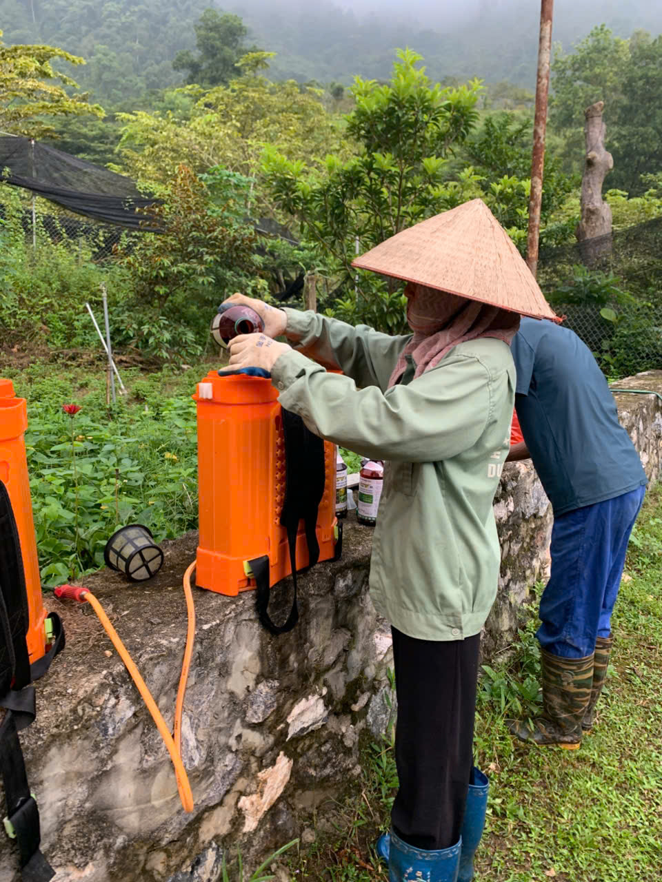30-06-2024 12:06:00 Bảo vệ thực vật Tiến hành phun chế phẩm sinh học Anisaf 01 và 02 để phòng trừ các loại sâu hại, các bệnh về nấm và virus gây ra cho cây. Cách dùng: pha tỉ lệ 200ml mỗi loại chế phẩm /20 lít nước phun cho toàn bộ vườn Hoàn thành