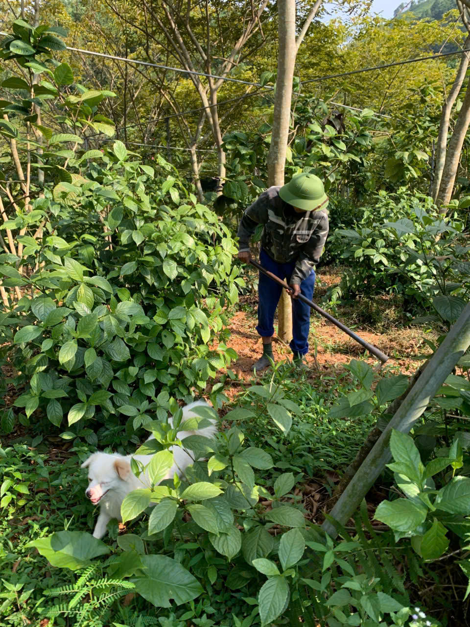 10-05-2024 12:05:00 Làm cỏ Tiến hành làm cỏ bằng tay kết hợp xới xáo cho một số khu vực của vườn trà. Dọn sạch cỏ dại, thực bì quanh gốc, đường kính 1m. Hoàn thành