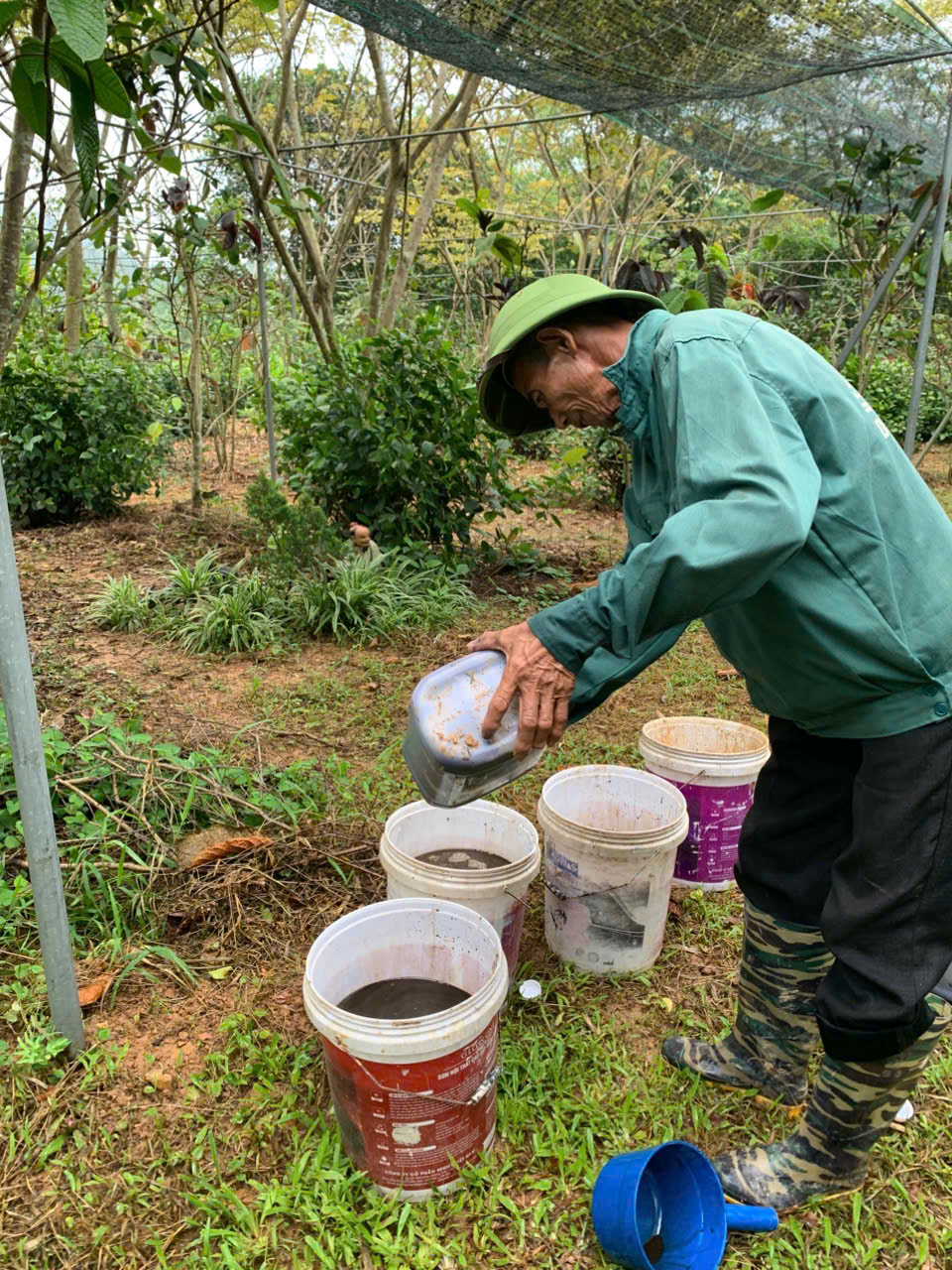 16-10-2024 12:10:00 Bón Thúc Sau cơn mưa chiều tối 15/10, đất còn đủ ẩm, tiến hành bón phân cho vườn trà. Dùng phân hữu cơ LUCAVI dạng dung dịch - Lượng bón: • Cây nhỏ: tưới 100ml dung dịch phân bón • Cây nhỡ: tưới 150ml dung dịch phân bón • Cây hình thành nụ hoa: tưới 200ml dung dịch phân bón - Cách bón: Tưới gốc dung dịch phân bón đậm đặc, sau đó tưới nước để phân ngấm dần vào đất Hoàn thành