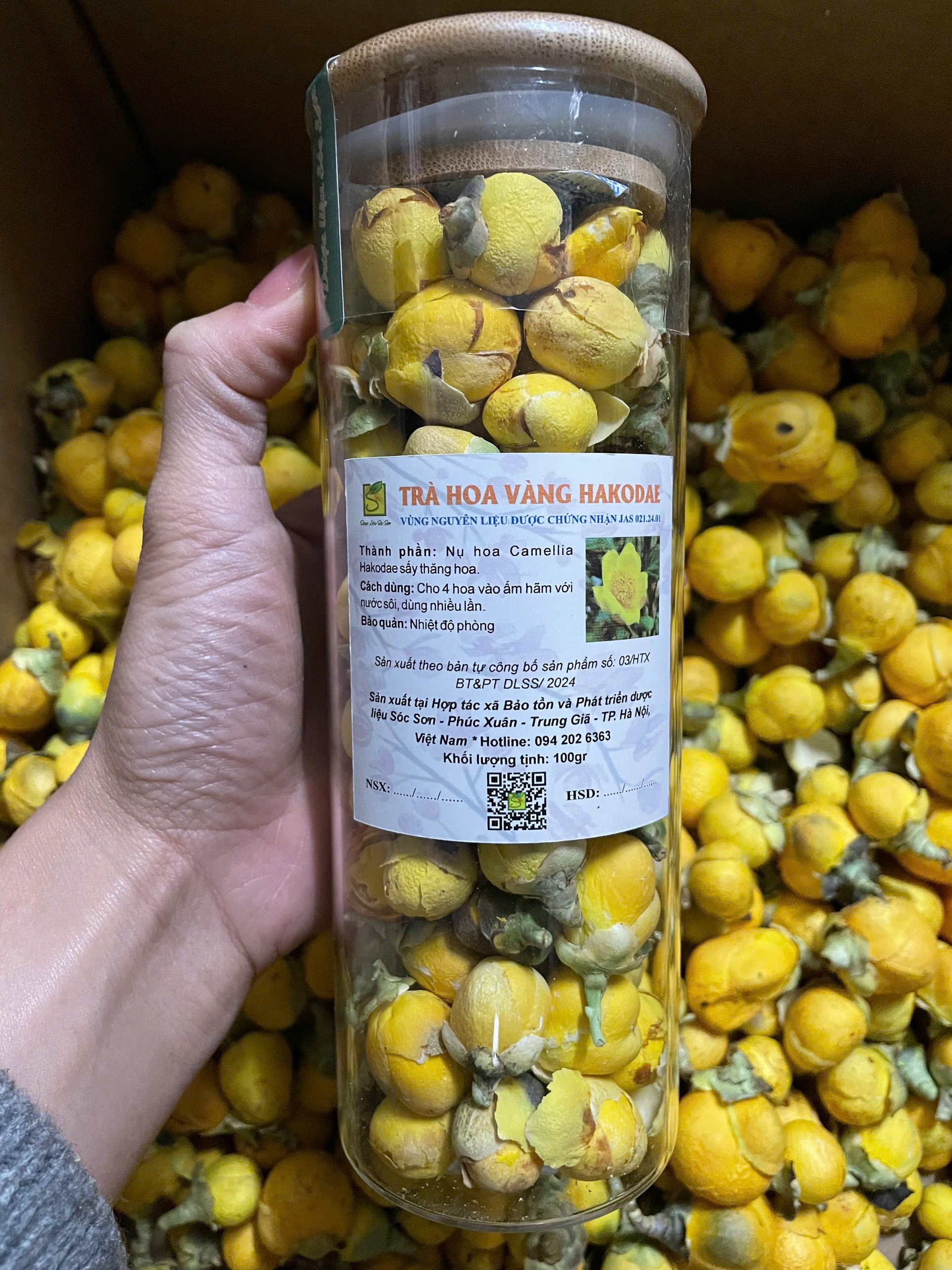 | 12-12-2024 12:12:00 | Chứng chận tiêu chuẩn | HTX Bảo tồn và Phát triển Dược liệu Sóc Sơn đạt chứng nhận "Sản phẩm phù hợp tiêu chuẩn Việt Nam về nông nghiệp hữu cơ" của Sở Nông nghiệp & PTNT Hà Nội, trong đó có sản phẩm trà hoa vàng. | Hoàn thành | |