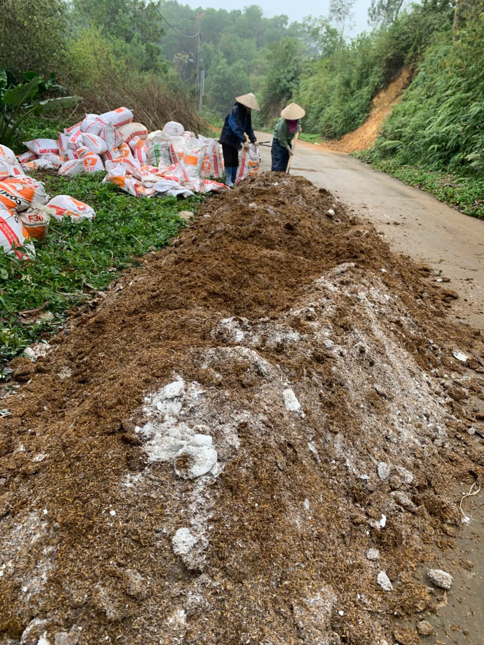 | 26-01-2026 12:01:00 | Phân hữu cơ | Tiến hành ủ phân sử dụng tại khu 1. Nguyên liệu gồm 4 tấn phân gà được thu gom từ các hộ chăn nuôi xung quanh, 100kg vôi, 2.5kg chế phẩm men vi sinh ủ "Kiến vàng". Thực hiện trộn đều phân và vôi với nhau, sau đó cứ rải một lớp phân rồi lại rải một lớp chế phẩm vi sinh Kiến vàng. Tưới nước cho đống ủ sao cho độ ẩm đạt 50%. Dùng bạt, bao rứa để đậy kín để giữ nhiệt và độ ẩm. Sau khoảng 15 - 20 ngày tiến hành kiểm tra, đảo trộn nếu cần và nếu nguyên liệu khô thì bổ sung nước. Dự kiến thời gian ủ từ 45 – 60 ngày. | Hoàn thành |